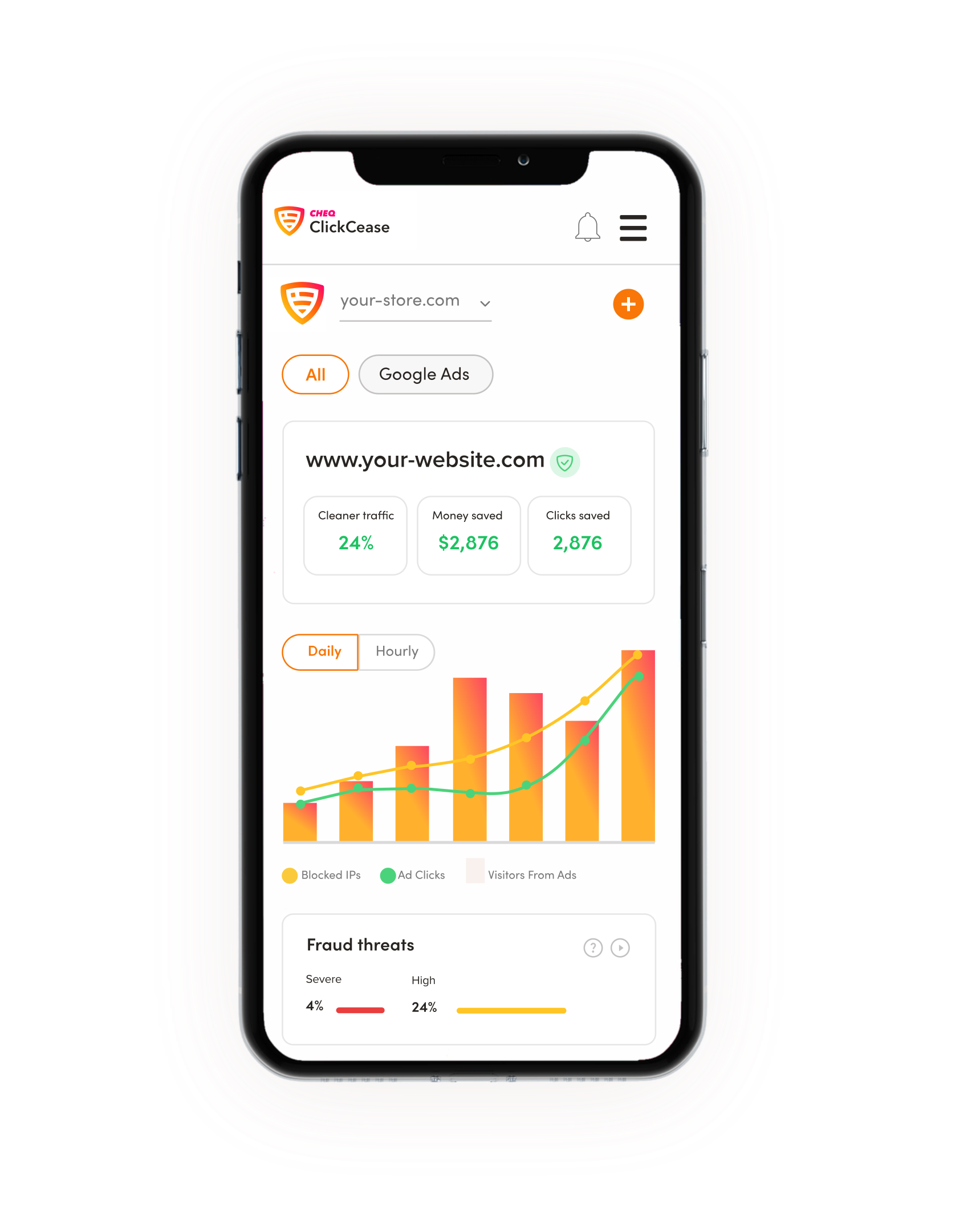 ClickCease goes the extra mile to make sure no genuine customers get blocked. With our custom features, extensive black-list of already known fraudulent users and a constantly learning AI algorithm, ClickCease gives you the best opportunity to reduce your CPA and increase conversions.
